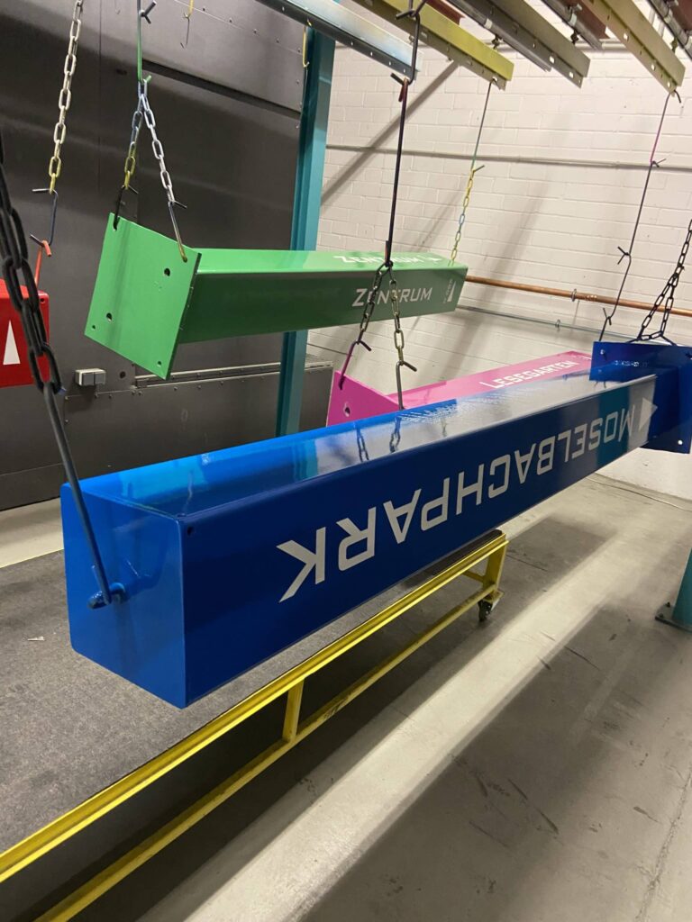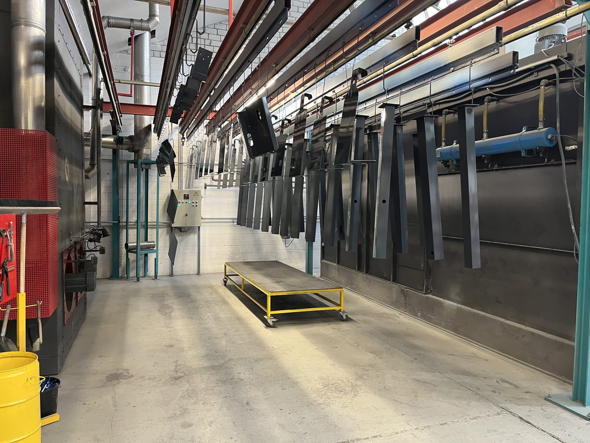 Nach dem Auftragen wird das beschichtete Werkstück in einem Einbrennofen erhitzt. Der Pulverlack schmilzt und bildet somit eine gleichmäßige, widerstandsfähige Schicht, die dann aushärtet. Dieses Verfahren sorgt für eine langlebige, kratzfeste und korrosionsbeständige Oberfläche.